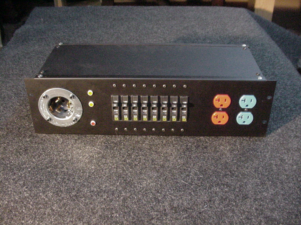 non-reflective powder coat finish. You may order this unit with more or less drops and in any length. You may specify a different inlet connector or a three-phase version with an L21-20 or other NEMA connector. Powercon and powercon true1 can also be fitted, it's also possible to mix powercon with Edisons. This unit can be built to your specifications. Call for pricing and design details. | |