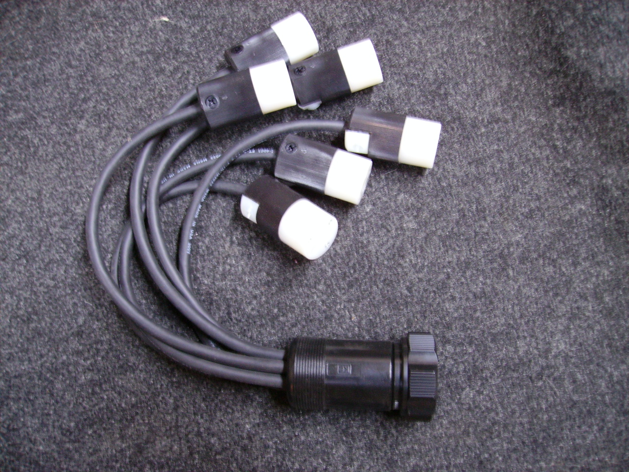 | One in five out cam splitter, available in single phase or three phase with fewer or more splits as needed. It can also be built with double neutrals for applications over 390 continous amps. This splitter can also be built using series 15 mini-cams. This unit can be built to your specifications. Call for pricing and design details. | |